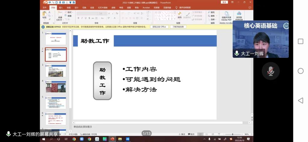 为继续深化研究生教育综合改革,使助教工作成为提高研究生培养质量和促进本科教学质量提升的“双抓手”,同时根据各级政府部门和学校的有关要求,结合学校对教学工作安排调整,公共教学资源部积极规划工作流程采用在线培训的方式组织开发区校区研究生助教专题培训。培训于9月19日12:30在腾讯会议以在线直播的形式进行,共有107名助教参加了此次培训。