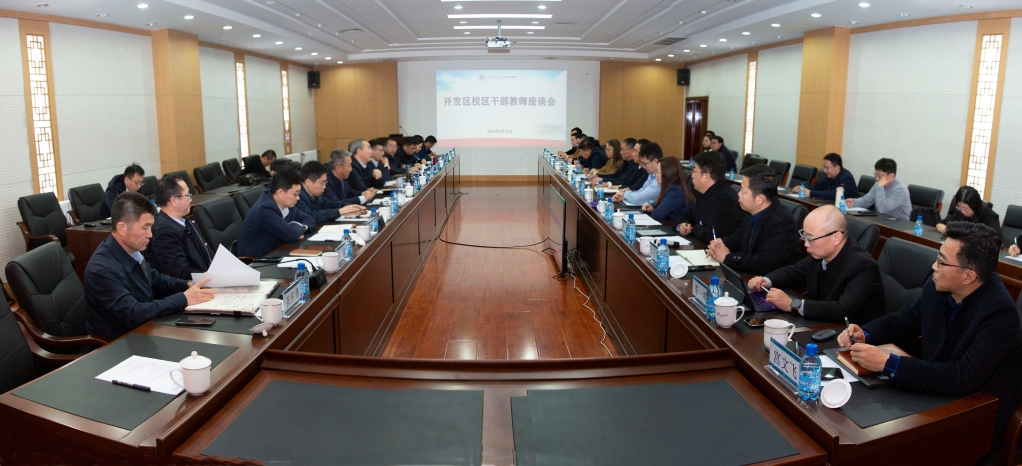 学校党政办公室、党委学生工作部、人力资源处、研究生院、教务处、科学技术研究院、国际合作与交流处、财务处、资产与实验室管理处、学科建设办公室,开发区校区管委会、校区各学院负责同志参加座谈。调研一行先后到校区各实验室、新建学生公寓、食堂等地调研,深入了解校区办学条件保障情况。