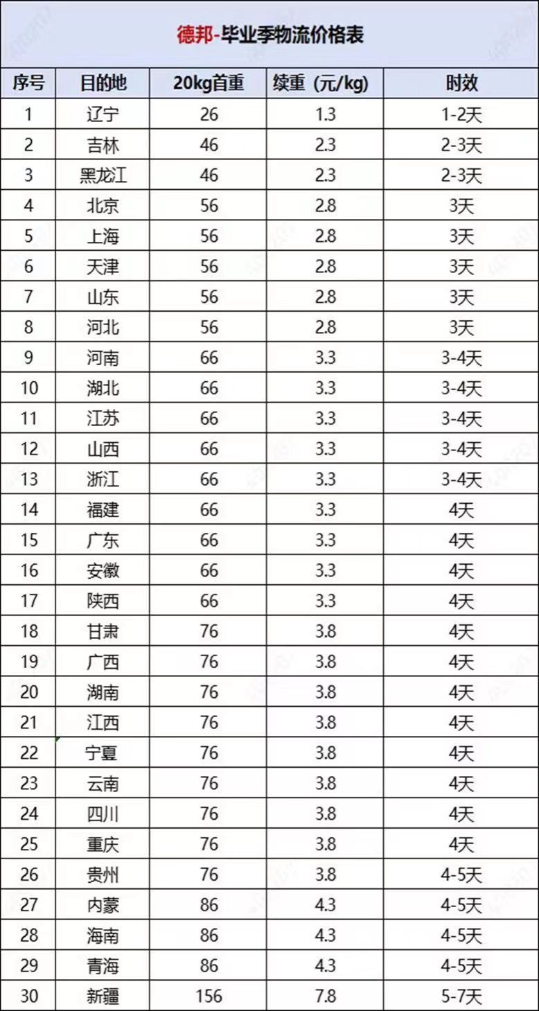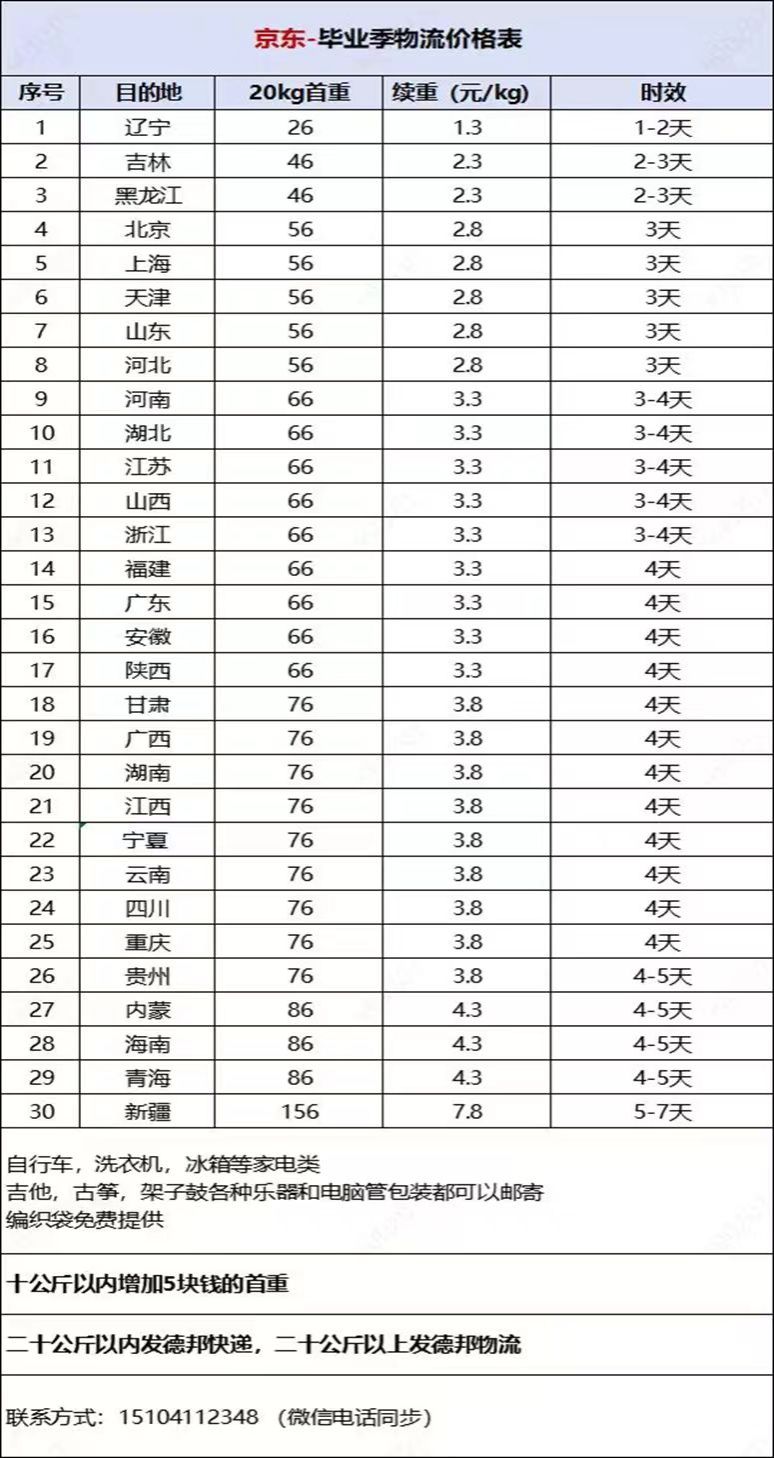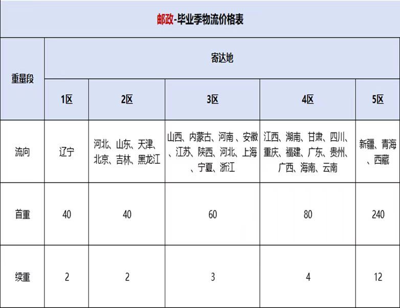 五、毕业生行李邮寄