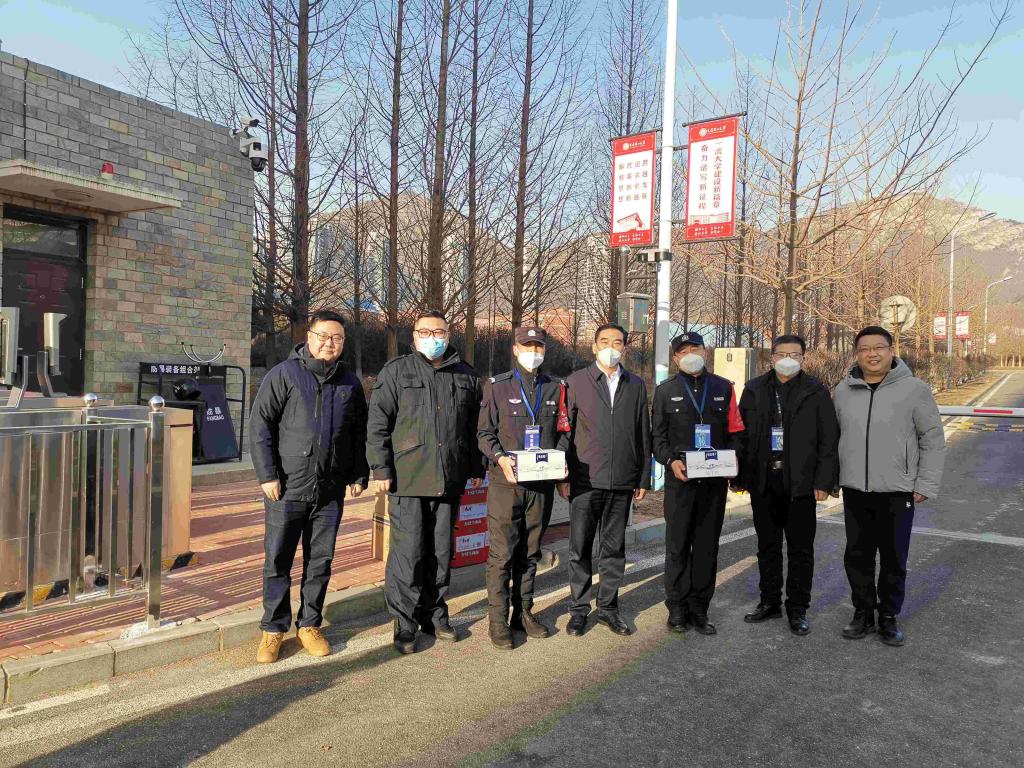 在2023年兔年春节来临之际,开发区校区管委会主任郑铎带领相关同志亲切看望和慰问了春节期间在岗一线工作人员,了解寒假期间餐饮住宿、供电供热、安全保卫等情况,向坚守岗位的干部教师和服务保障人员致以诚挚问候,并送去新春祝福。