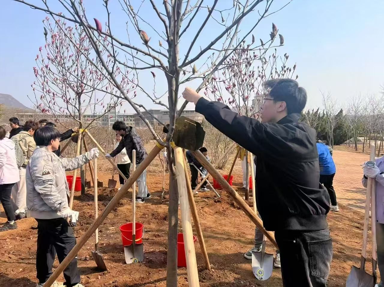 开发区校区创建毕业生纪念林,并于2025年起,每年开展毕业生植树活动,既引导了学生饮水思源、常怀母校培育恩情,又寄予了毕业生发荣滋长、生机勃勃的美好祝愿。愿这一棵棵树苗承载起青春回忆与奋斗之歌;这片树林长久丰茂,见证校区发展的一路繁花与累累硕果。