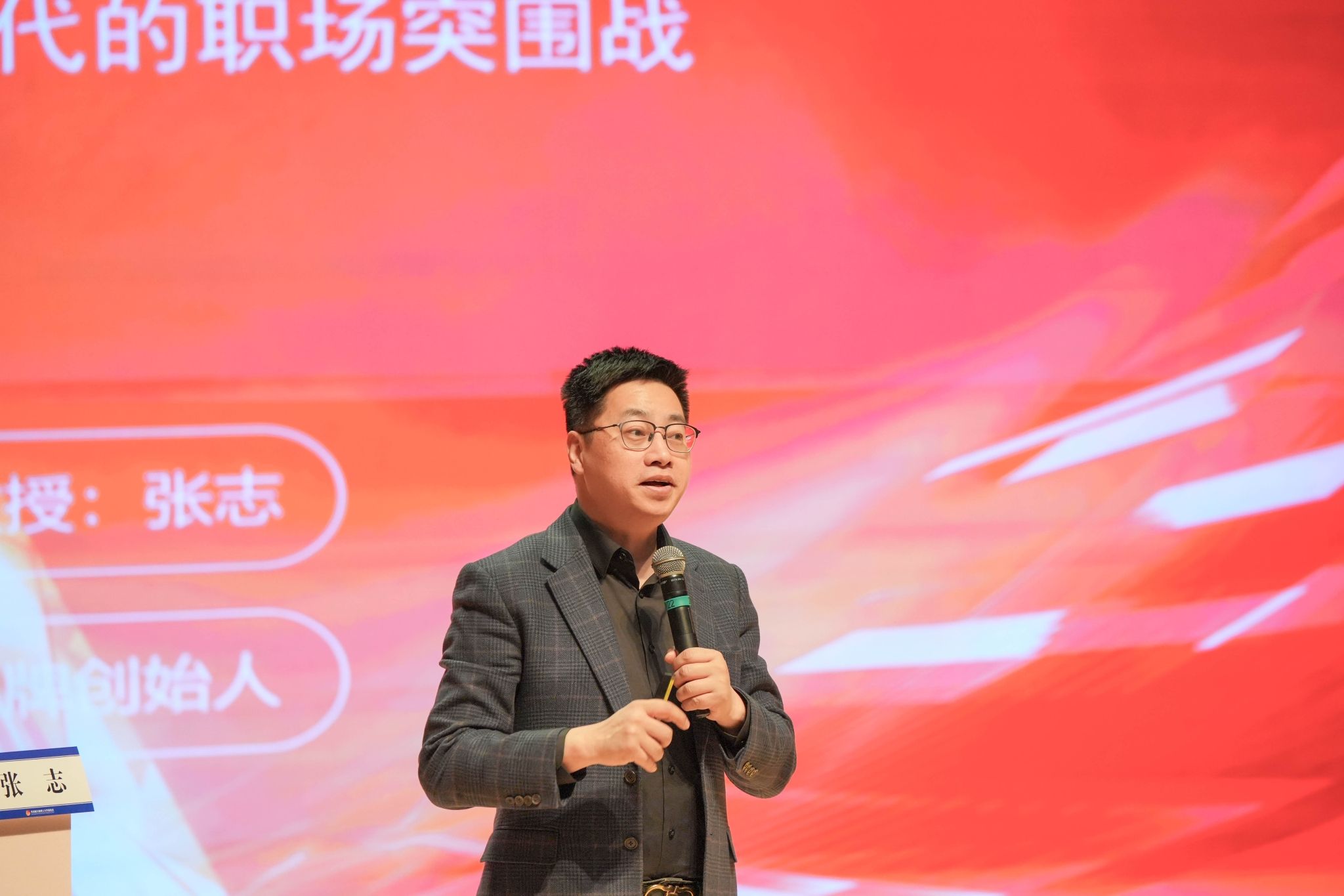 近日,全网4000万+粉丝的秋叶品牌创始人张志(秋叶大叔)做客“百川讲堂”第269期,带来主题讲座《拥抱AI红利——智能时代的职场突围战》。校团委教师代表,各学院、书院的青年学生,百川会员等500余人到现场聆听讲座。
