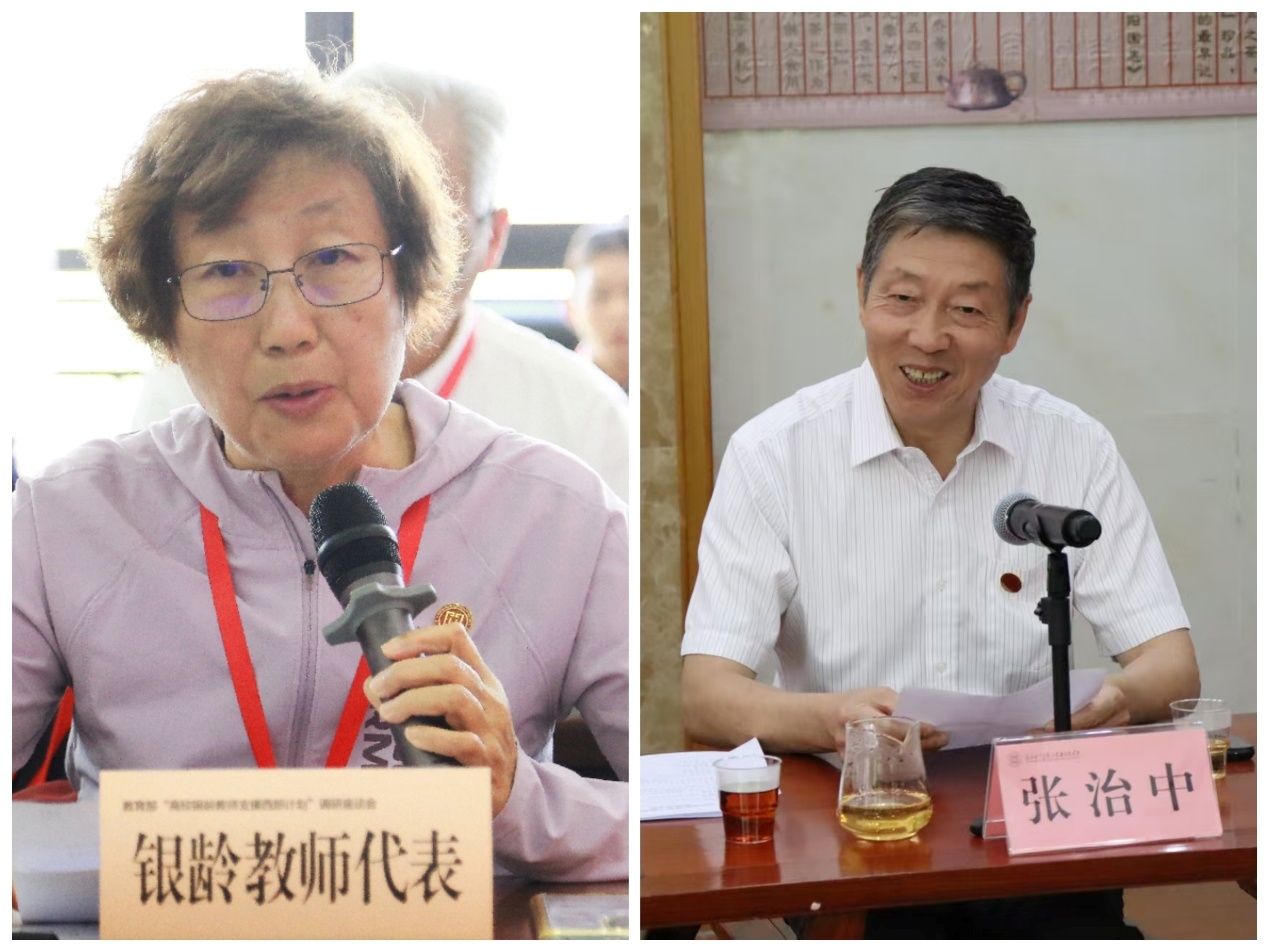 在滇西大总部支教的建设工程学院杨微老师结合多年的支教经历,分享了对西部教育振兴的深刻感悟,详细指出银龄教师如何在教学、科研、教师培养、教学质量和服务地方等方面发挥政治优势、专业优势和经验优势。在滇西大学普洱茶学院支教的外国语学院张治中老师作为“银龄计划”首批到岗的教师,通过“分层教学法”显著提升学生考研成功率,并带培5名青年教师,助力学院英语师资团队从4人扩至9人。