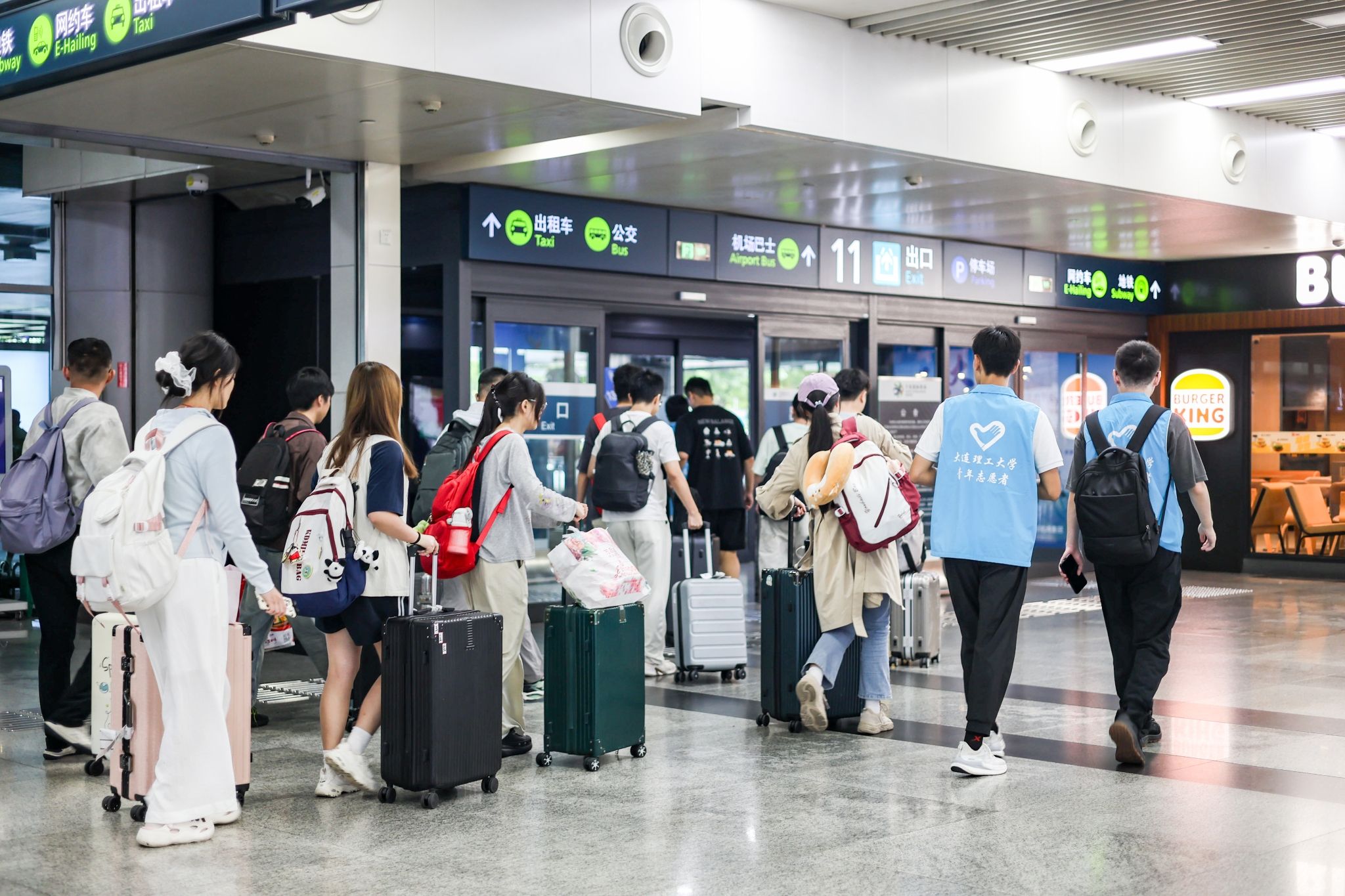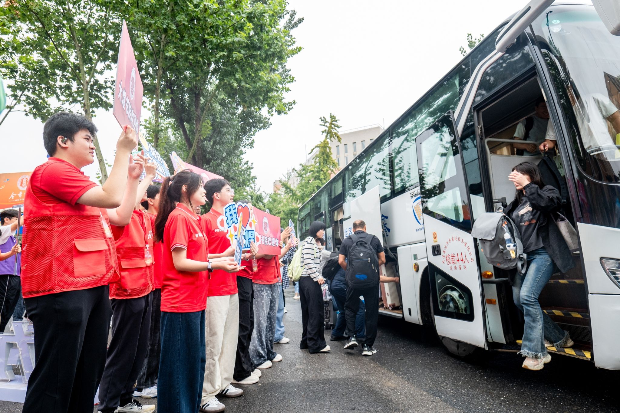 迎新期间,学校在大连站、大连北站、大连机场等主要车站设有迎新接站及校车服务,帮助新生运送行李。迎新现场,高年级学生志愿者为新生提供咨询引导等暖心服务,保卫处工作人员耐心指挥交通。安全、温馨、细致、有序,处处洋溢着欢迎新同学的热情。食堂全天候开放,提供八折优惠套餐、免费领取矿泉水等服务。
