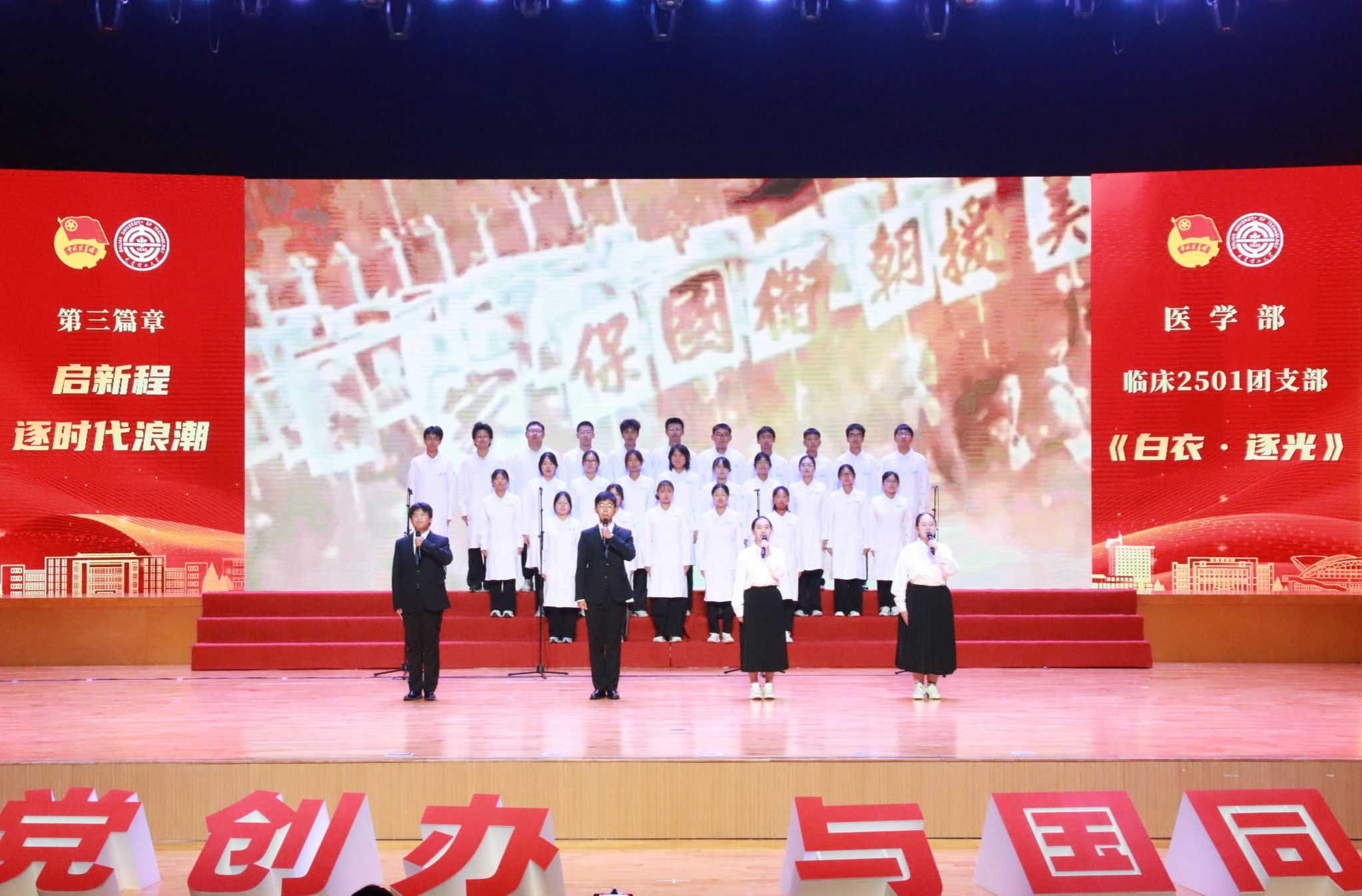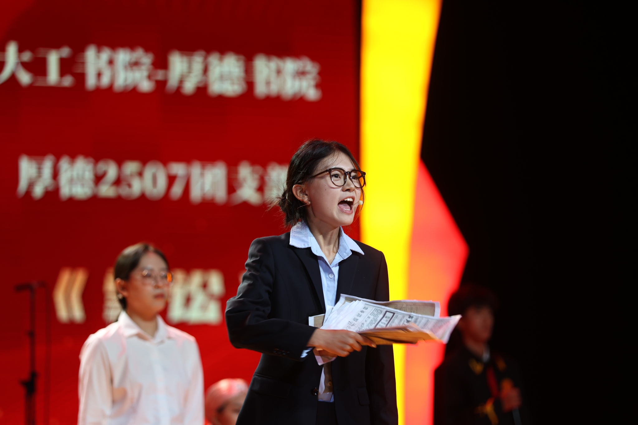 诗声朗朗,是大工青年书写热爱的独特方式;诗声朗朗,是大工青年传递信念的红色纽带。历时26天,超过5000名新生参与,经过紧张筹备和学院、书院初赛,9月27日,来自各书院、学院(部)的17支决赛团支部汇聚在大连理工大学新生团支部诗歌朗诵比赛决赛舞台,共同用朗朗诵声向祖国深情告白,把穿越时空的新声汇聚为属于2025级新生青年的澎湃和声。