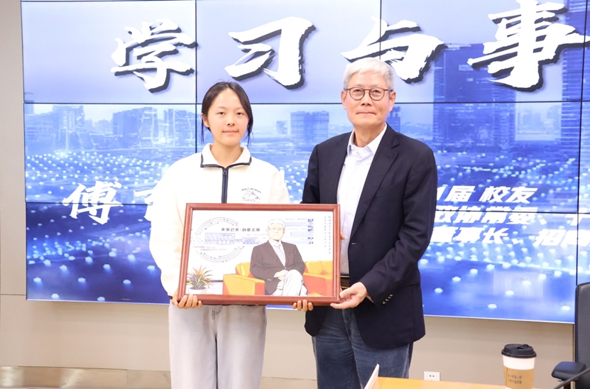 讲座最后,未来技术学院学生代表向傅育宁赠送纪念礼物,以表感谢与敬意。