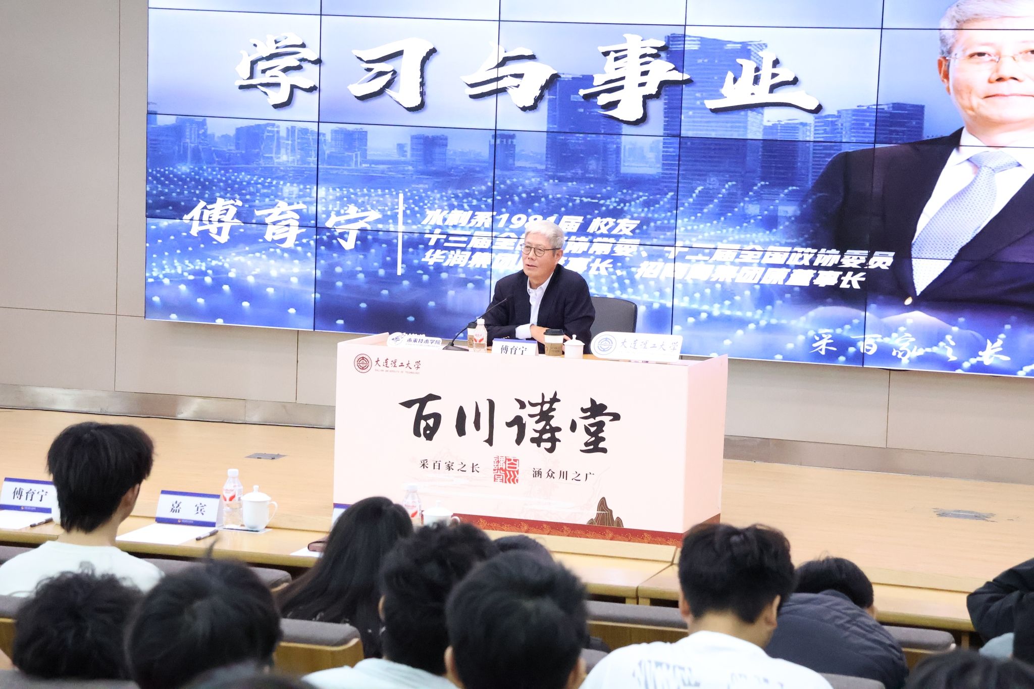 以学习积蓄力量,让事业成就梦想。11月1日,我校水利系1981届校友、十三届全国政协常委、十二届全国政协委员、华润集团原董事长、招商局集团原董事长傅育宁博士做客“百川讲堂”第290期暨未来技术学院“未来讲堂”第9期,带来主题为《学习与事业》的讲座。来自未来技术学院、医学部等本研团支部青年和百川会员共计400余人到场聆听讲座。