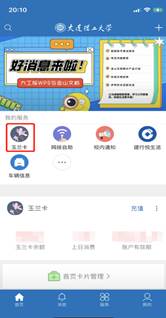 打开i大工---玉兰卡---网费充值---开发区校区—输入充值金额---玉兰卡支付----确认支付(包月月租为20元,账号余额必须大于20才能上网)