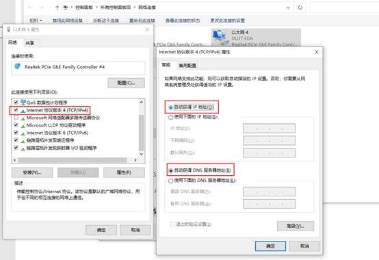 3、 左键点击属性,点Internet 协议版本4(TCP/IPV4) 属性选择自动获得ip地址和DNS服务器,确定。