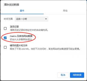 点击清除浏览数据,然后返回《上网登录过程》第6步重新登录。