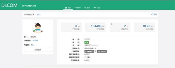 注意:如果超过150G的流量且账号余额大于20元,继续使用校园网按1元1G(流量0.001元/M。)自动扣费。