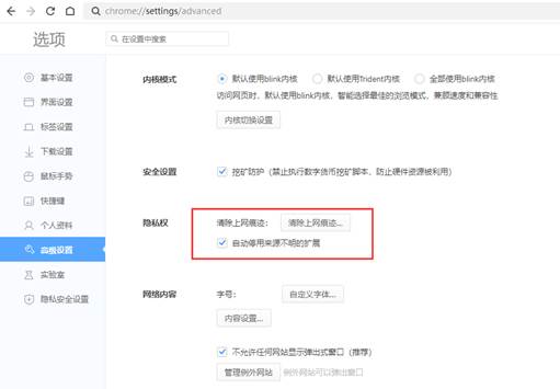 360浏览器,设置-----高级设置。