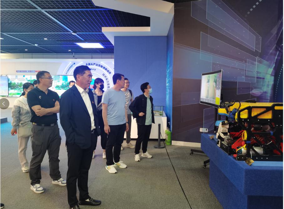 讲解员带领着党员同志们共同回顾城市新时代建设成就,展厅以习近平新时代中国特色社会主义思想为主线,亮点纷呈,步步匠心,让参加学习的党员同志们亲身体会到大连处处涌动的生机与活力,感受着大连升腾的希望和梦想,在感悟大连发展成就的同时,汲取了奋进新时代的力量。特别是在由校区自主研发的水下抓取机器人这个高科技展示柜台前,全体党员同志们感慨校区事业发展的硬实力,感受到高校推动地方发展的自豪感与使命感。